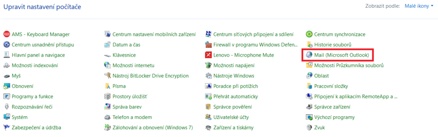 3) V ovládacích panelech Mail (Microsoft Outlook).