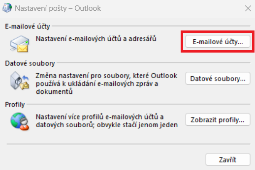 4) Objeví se následující dialogové okno. Klikněte na E-mailové účty.