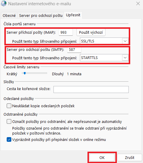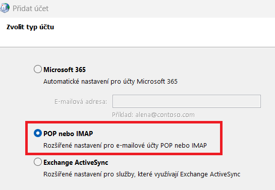 V tomto kroku se musíte rozhodnout, zda budete používat port pro příchozí poštu IMAP.