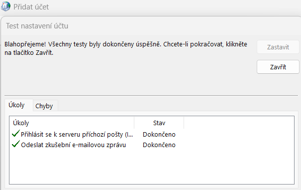 16) Účet byl úspěšně přidán do aplikace Outlook.