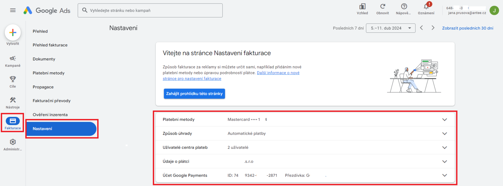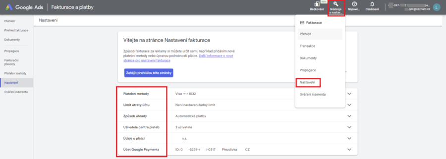V levém postranním menu kliknete na Fakturace, následně vyberete Nastavení. V dalším kroku si postupně rozkliknete jednotlivá pole Platební metody, Způsob úhrady, ... a doplníte/změníte potřebné informace.