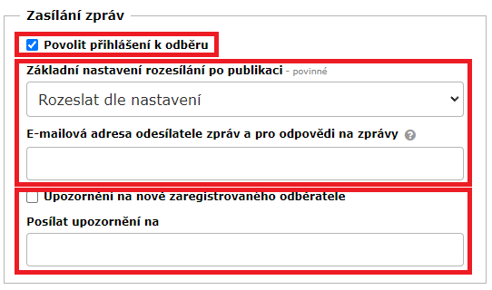Povolit přihlášení k odběru: umožníte uživatelům, aby se mohli skrze svůj e-mail přihlásit k vašemu odběru nově zveřejněných článků.