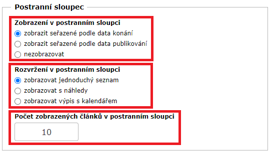 Data konání - sestupně: pro správné řazení je nutné mít u článků vyplněné pole Datum konání.