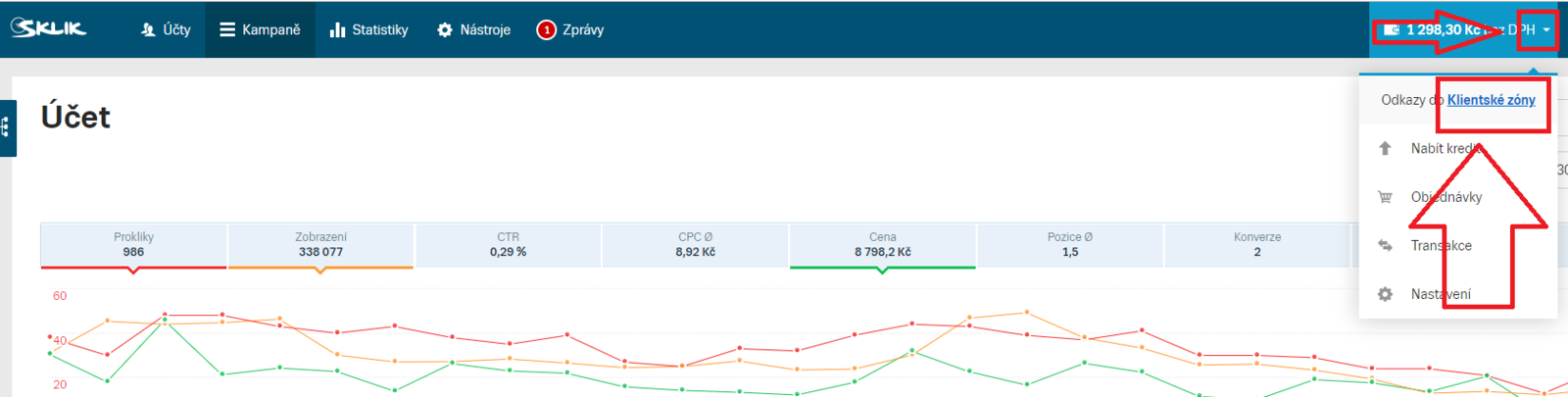 Přihlaste se do účtu Sklik na sklik.cz.