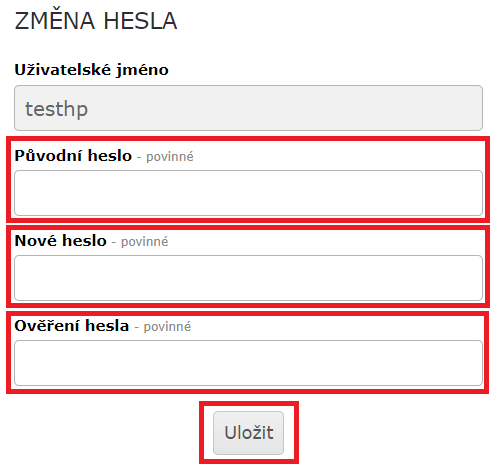 Nastavení nového hesla provedete následujícím způsobem.
