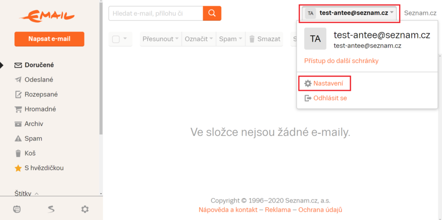 1) Přihlaste se do svého emailového účtu na seznam.cz, na který chcete přeposílat zprávy.