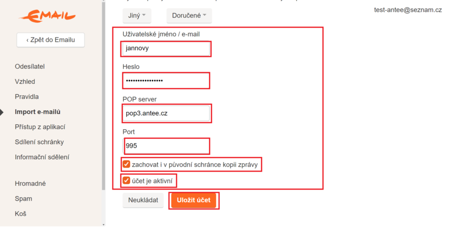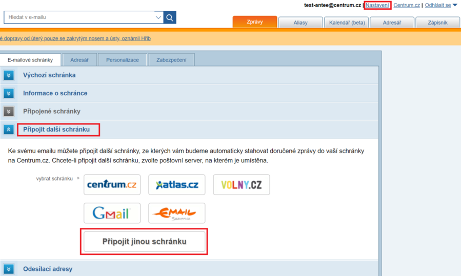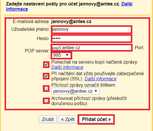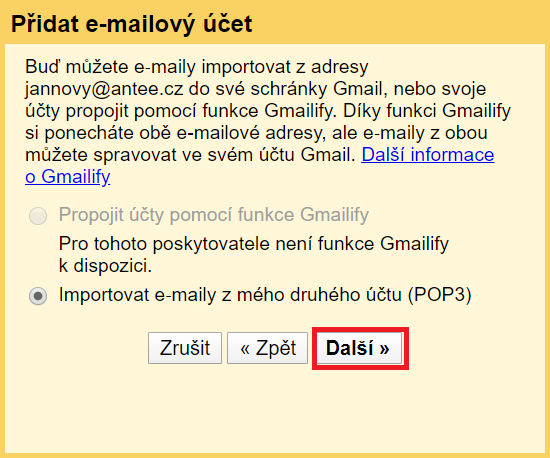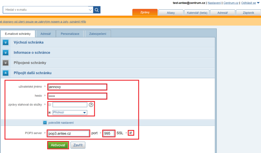 Upozornění: Stáhne se vám veškerá doručená pošta z propojovaného e-mailu. Pokud máte v této složce e-maily, pomíchají se s nově staženými.