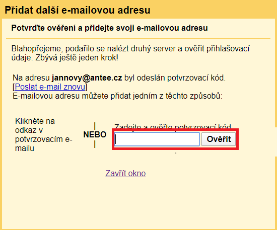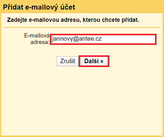 6) E-mailová adresa: vyplňte e-mailovou adresu, ze které chcete přeposílat e-maily.