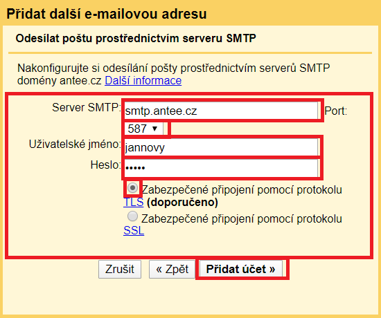 10) Klikněte na Přidat účet: e-maily se vám začnou stahovat do 5 minut.
