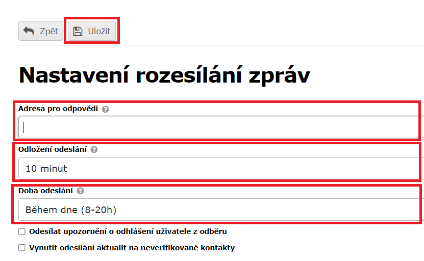 - Vynutit odesílání aktualit na neverifikované kontakty: zpráva k rozeslání přijde i odběratelům, kteří zatím nejsou verifikovaní.