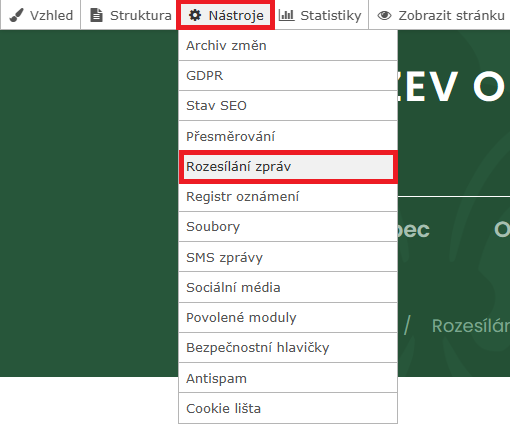 2) Přejděte na Nástroje - Rozesílání zpráv