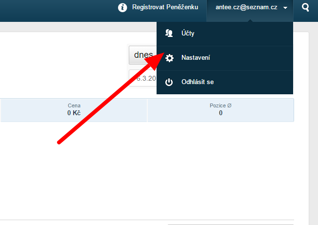 Vpravo nahoře klikněte na název svého účtu (email) a po objevení nabídky klikněte na Nastavení.