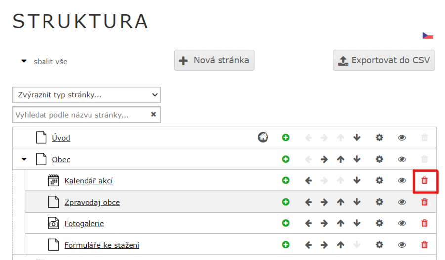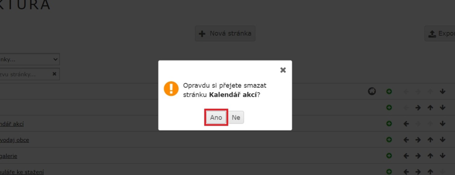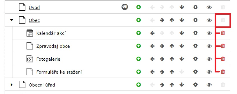 6) Pokud stránka obsahuje podstránku, tak ji nelze smazat. Musíte nejdříve smazat všechny podstránky nebo podstránky přesunou.
