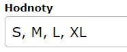 Pozn.: Do pole Hodnoty od sebe oddělujte jednotlivé hodnoty čárkou