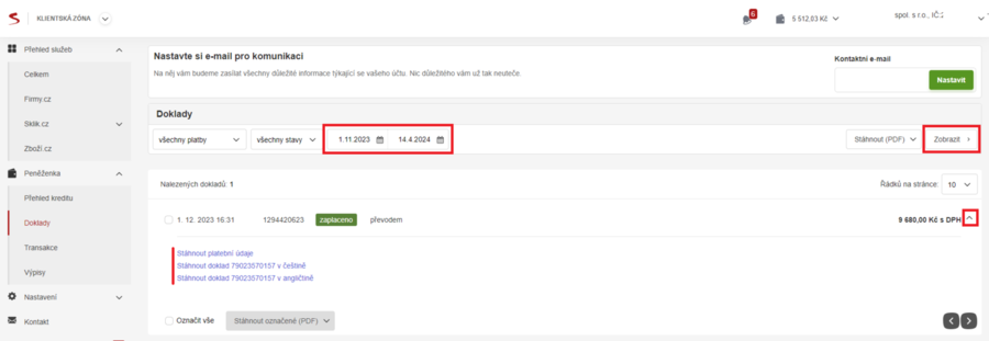 Stažení faktur z klientské zóny