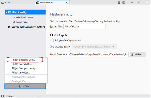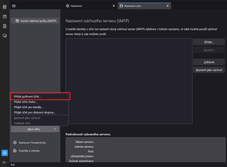 3) Klikněte na Přidat poštovní účet....