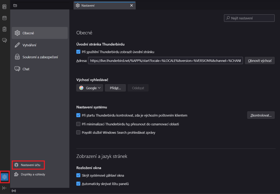 1) Spusťte poštovního klienta Thunderbird.