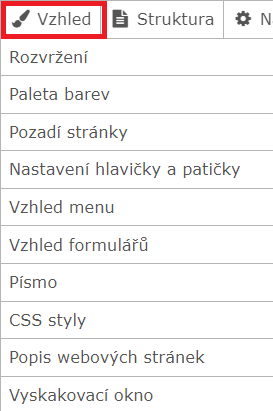 Grafické změny můžete samy také provádět po přihlášení do editace stránek, v sekci Vzhled.