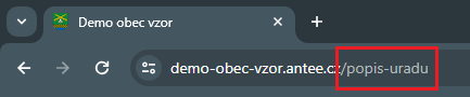 Zamění těžko zapamatovatelné znaky a čísla v adrese a nahradí je zadaným textem. Tvar musí být bez diakritiky a bez mezer. Pro oddělení slov je možné použít „-“ (pomlčku). Po zadání názvu stránky se vyplňuje automaticky.
