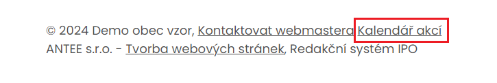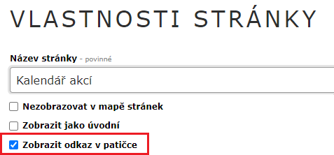 Všechny takto zaškrtnuté stránky se budou následně zobrazovat v patičce.