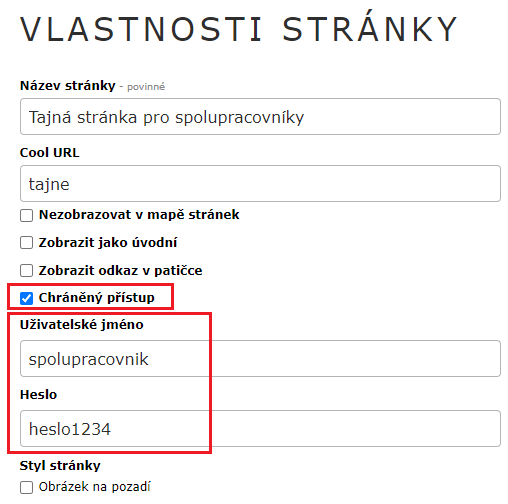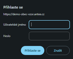 Pro přístup do stránky, kde je aktivovaný chráněný přístup, je po návštěvníkovi vyžadováno přihlášení v podobě uživatelského jména a hesla. Uživatelské jméno a heslo se nemění, je tedy pro všechny návštěvníky stejné.