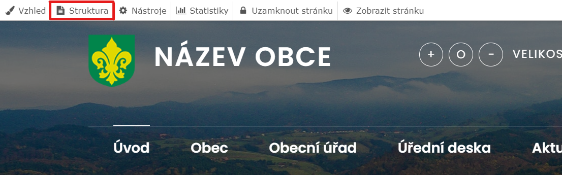 2) Na vrchní nástrojové liště vyberte STRUKTURA.