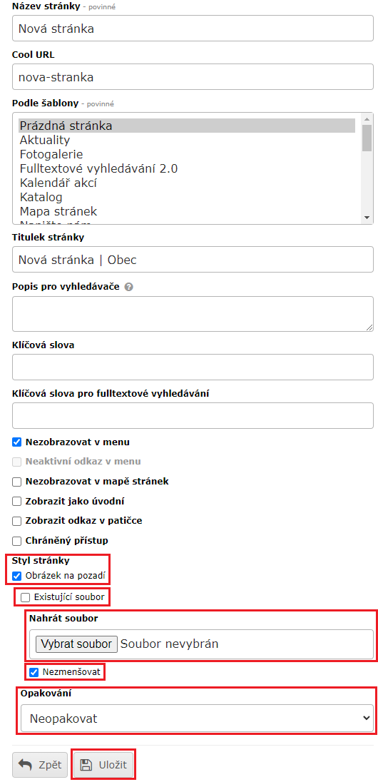 Chcete-li nahrát odlišný obrázek na pozadí konkrétní stránky, tato funkce Vám to umožní.
