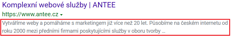 POPIS WEBOVÝCH STRÁNEK se zobrazuje např. ve výsledcích vyhledávání prohlížečů. Slouží ke stručnému popisu o čem stránky jsou a co na nich může návštěvník najít.