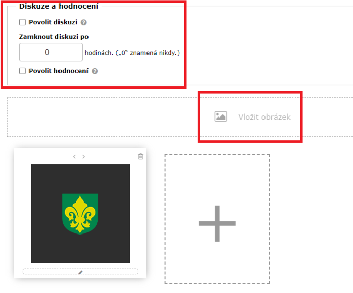- Vložit obrázek: vložení obrázku/ů k článku.