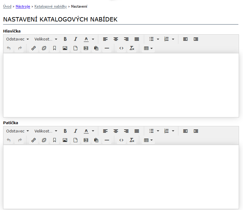 Zde už se nacházíme v nastavení kde si můžeme vytvořit hlavičku a patičku, která bude v každé nabídce.(Pozor! Nastavený podpis v e-mailové schránce se nezobrazuje)