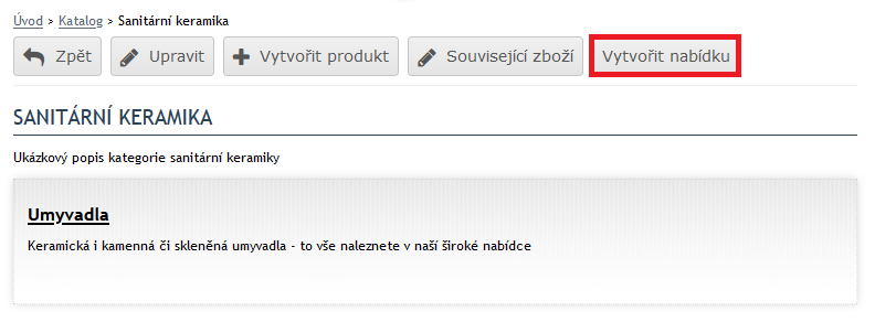3) Vytvoříme nabídku pomocí tlačítka v liště Vytvořit nabídku