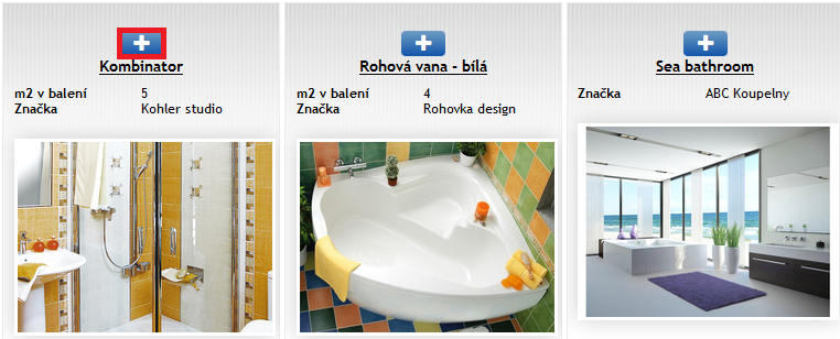 4) Navolíme produkty, ze kterých bude nabídka tvořena (klikáním na modrá tlačítka plus)