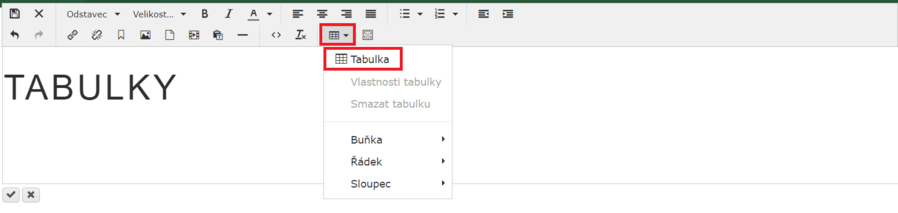 3) Klikněte na ikonku Tabulky.