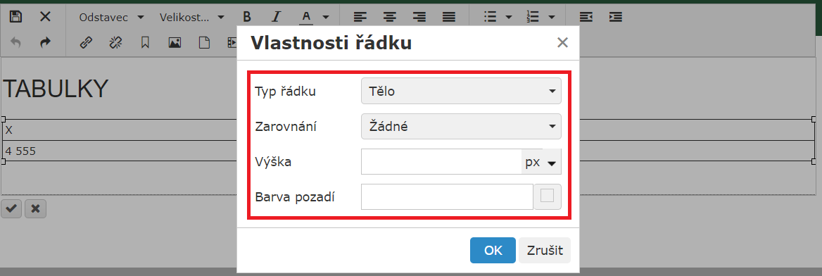 3) Proveďte úpravy vlastností řádku a potvrďte je kliknutím na OK.