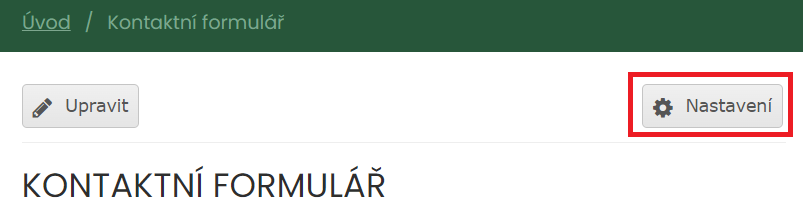 6) Přejděte na nově vytvořenou stránku (např. Kontaktní formulář).