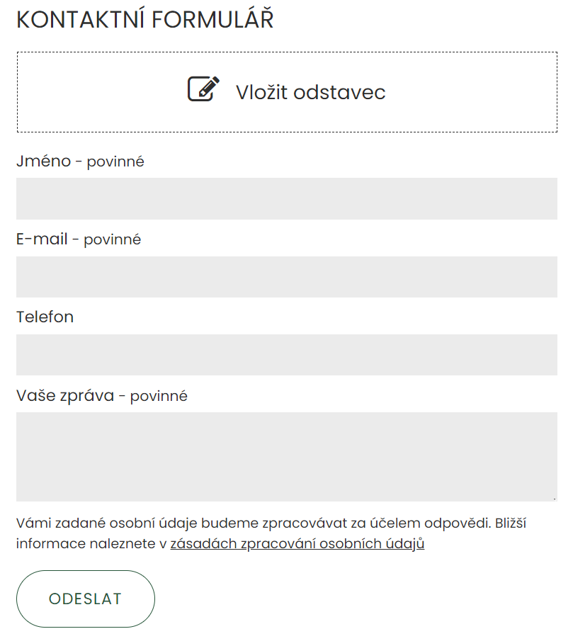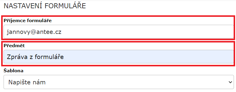 Samozřejmě lze nastavit i více polí ve formuláři či nastavit, která pole mají být povinná. V tomto případě prosím kontaktujte naši technickou podporu na e-mailu ipo@antee.cz, či telefonicky +420 606 230 000.