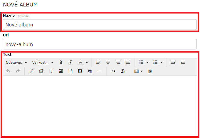 - URL: generuje se automaticky dle názvu alba, lze upravit.