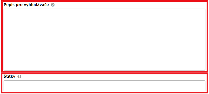 - Popis pro vyhledávače: popis slouží internetovým vyhledávačům pro zobrazení textu přímo na stránce vyhledávače. Vyhledávač tento text nemusí použít. Pokud nebude vyplněno převezme se popis z pole pro Text.