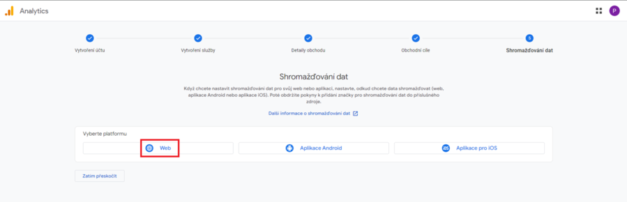 7. Vyberete platformu - ve většině případů vyberete Web.