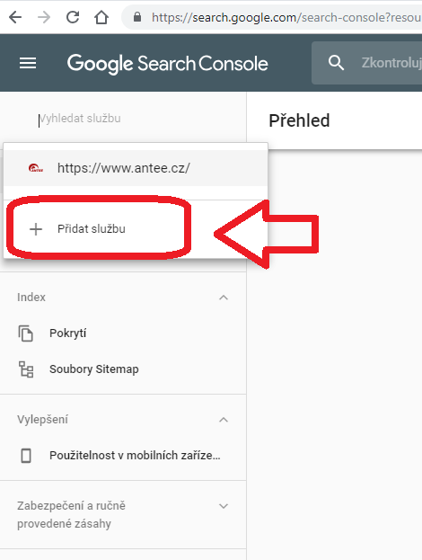 1. Otevřete si stránku https://search.google.com/search-console/